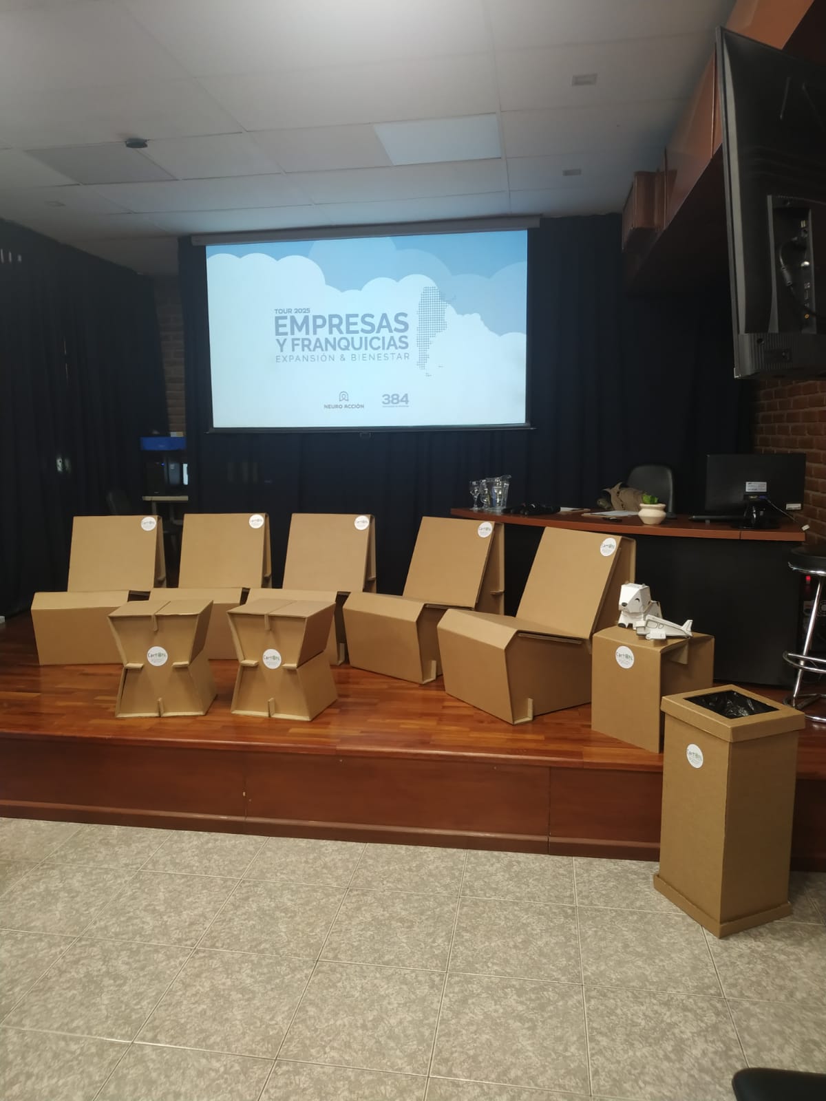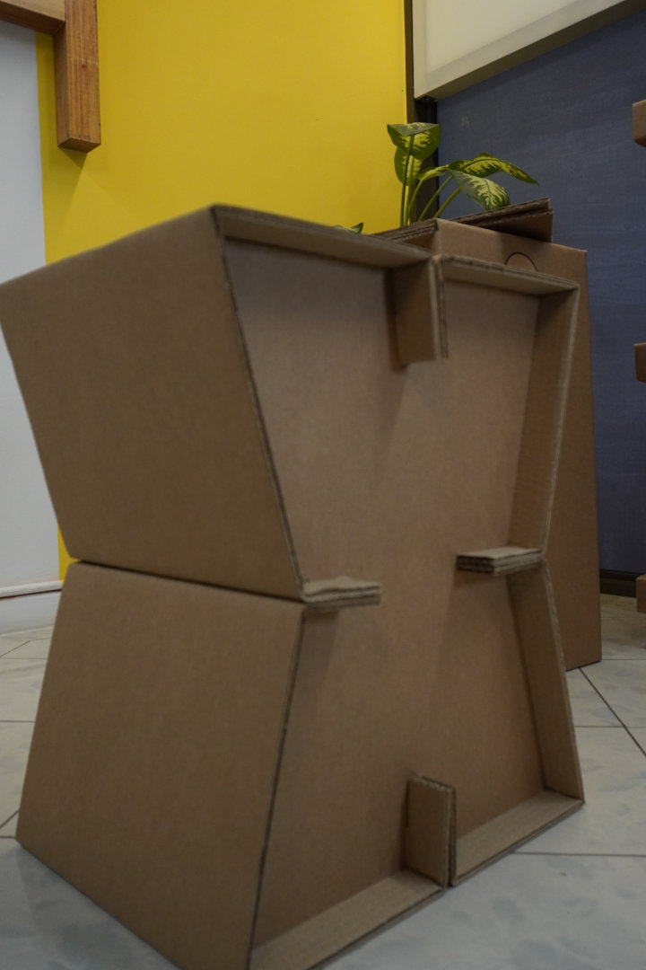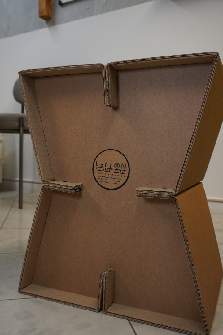 Muebles en cartón reciclado, resistentes, versátiles y listos para tu espacio.