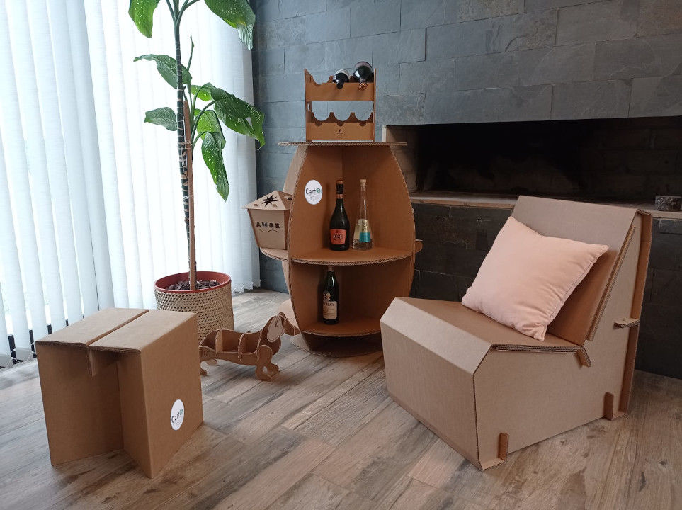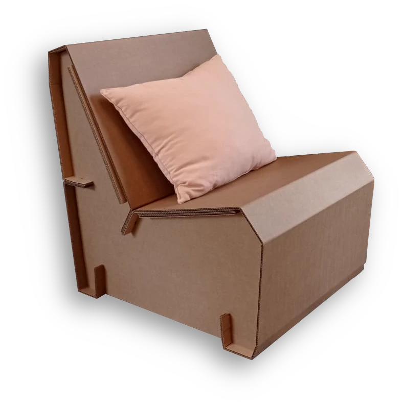 Muebles en cartón reciclado, resistentes, versátiles y listos para tu espacio.